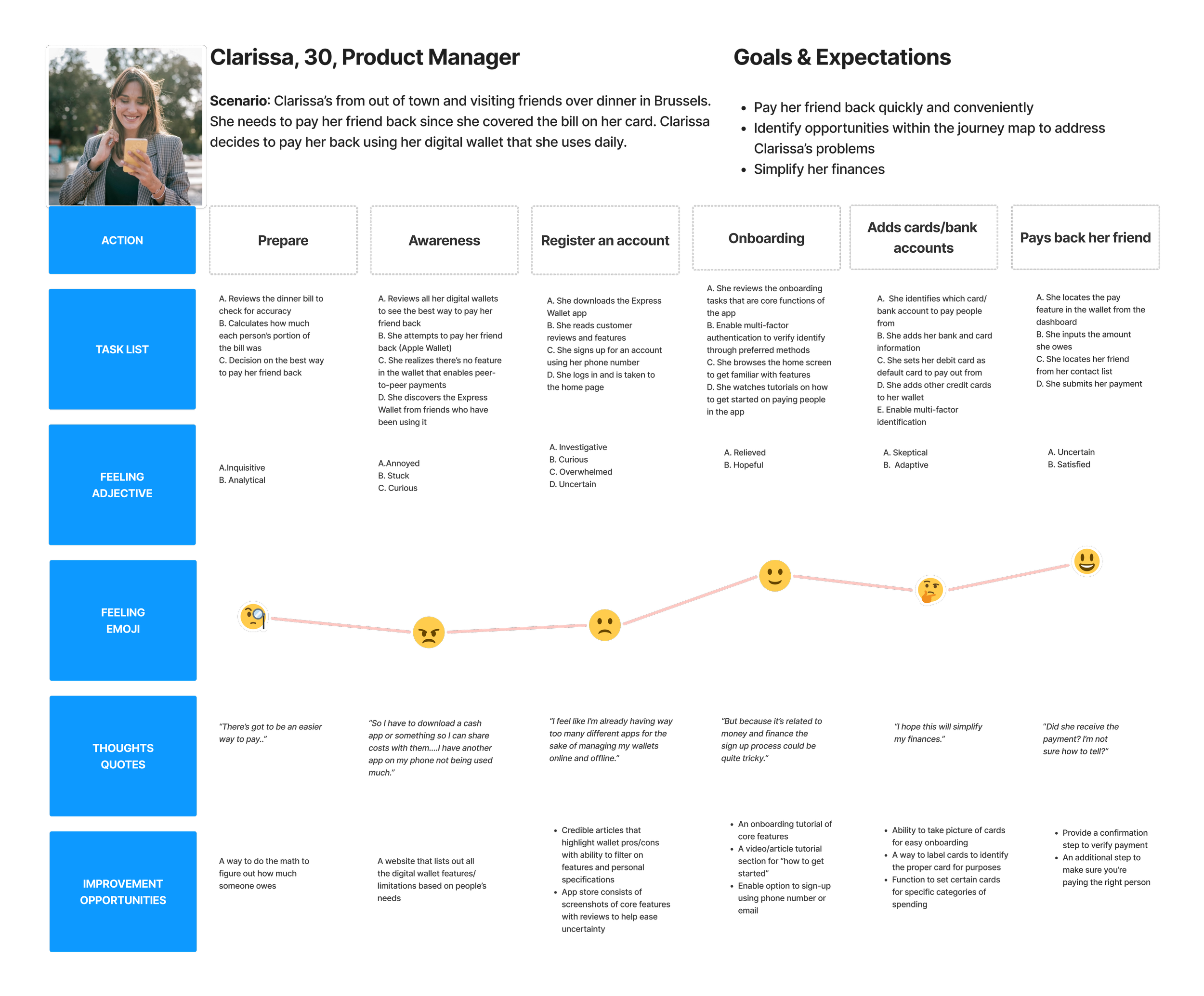 Clarissa's my primary persona and she represents people who are often on the go, tech-savvy and juggling many apps just for paying back friends due to the limitation of features depending on location.